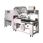 This automatic L-Bar Sealer Shrink Wrap Machine uses a belt to belt transfer system together with a synchronized film advance to transfer product from the in feed belt into the L-bar sealing area. This automatic L- bar sealer is a production sealing machine capable of speeds up to 25 packages per minute – depending on package size and configuration of product.